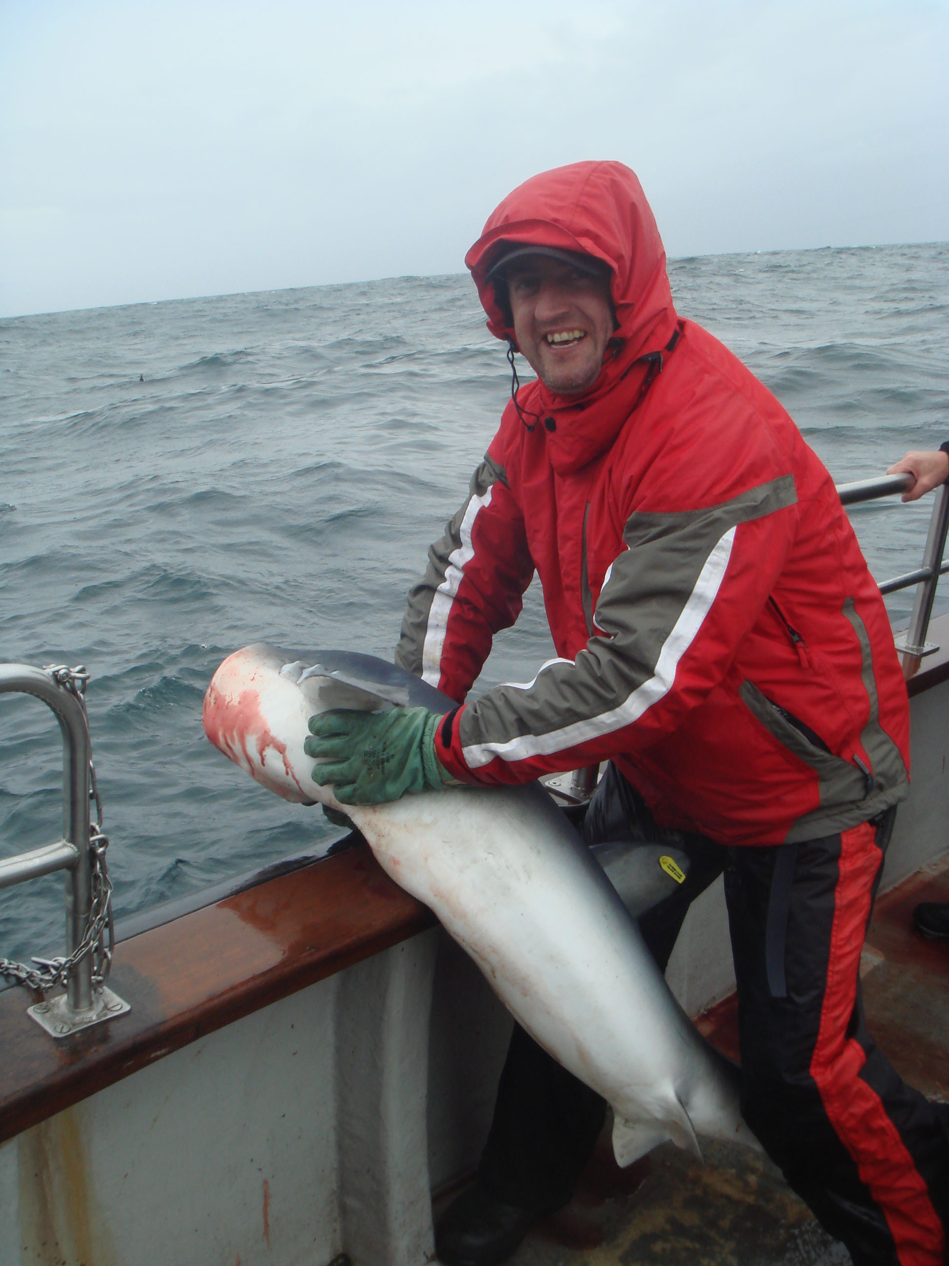 The fishing the last week has been good with both the inshore ,offshore and Estuary producing some great sport for Anglers from Ireland ,England,France,Belgium,Holland ,Lithuania ,and Poland.Offshore the inshore wrecks producing lots of Ling , Haddock and Whiting to near Specimen weight,conger to mid 30s Pollack to 11lbs and medium Coalfish.Several sharks lurking in the wreck were attacking the fish on the way up and Ronnie de Sobre from Belgium had a great fight on light spinning gear with a blue aprox weight 60lbs while retrieving a Pollack from the wreck.The Blue broke the trace beside the boat but what a fight!On the reefs plenty Pollack,good size Cod best method baited Perks,the heaviest though taken by Marcel Wuyts on a flowing trace on a deepwater reef.Plenty of conger up to the 25lb mark.On the day we devoted to sharking the weather conditions were difficult but we managed 5 runs with 2 tagged,the heaviest a fish just over 2 M for Anthony Hislop.The self drives had good Pollack fishing with fish over 10lbs and drifting for thornbacks produced fish to 9lbs,with good dabs as well.In the estuaries of Courtmacsherry and Clonakilty ,Bass were being caught on sandeel and lures,the heaviest I heard of was a fish of 6.5lbs,with lots of schoolies taken at the Woodpoint on spinners and Lures